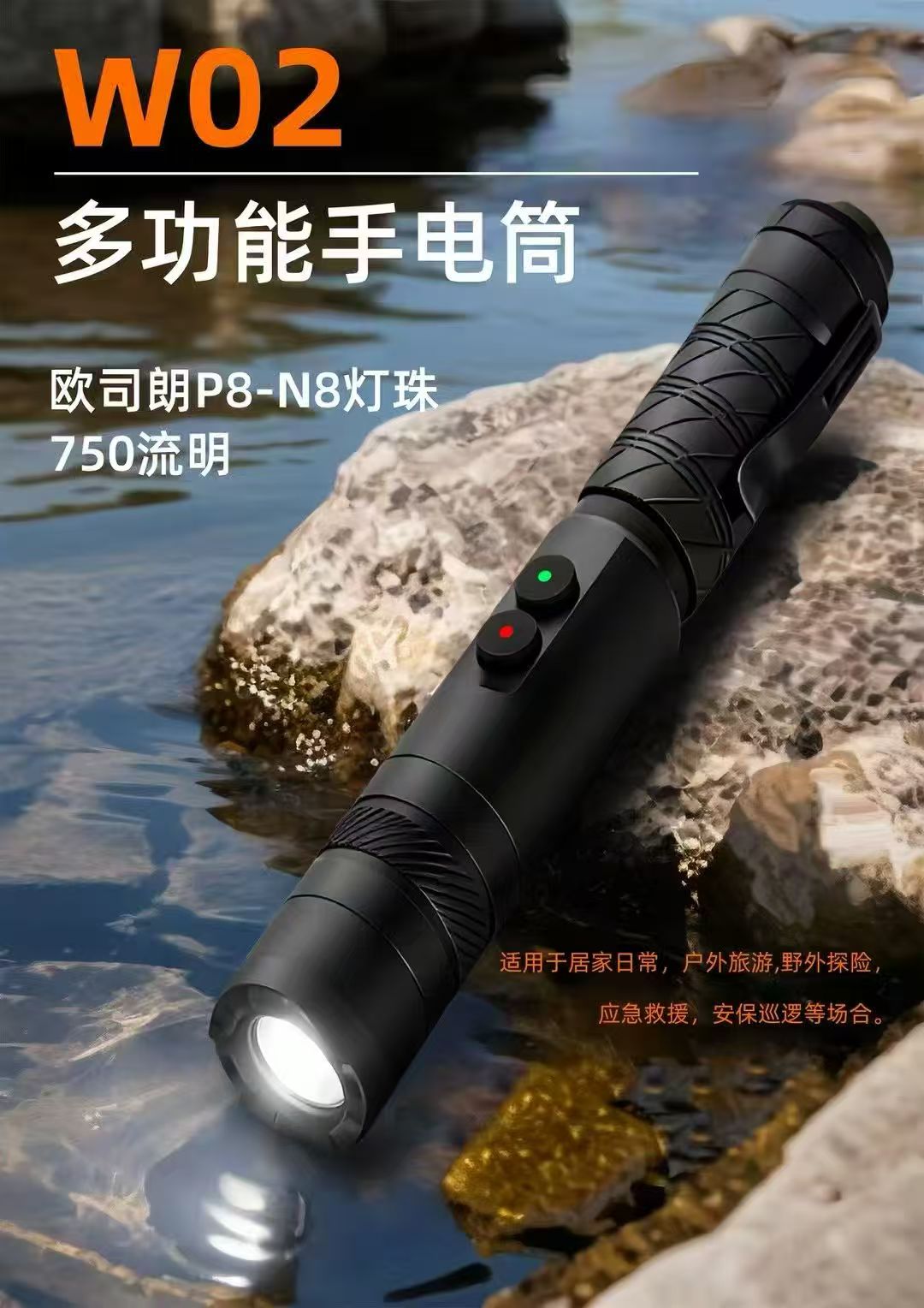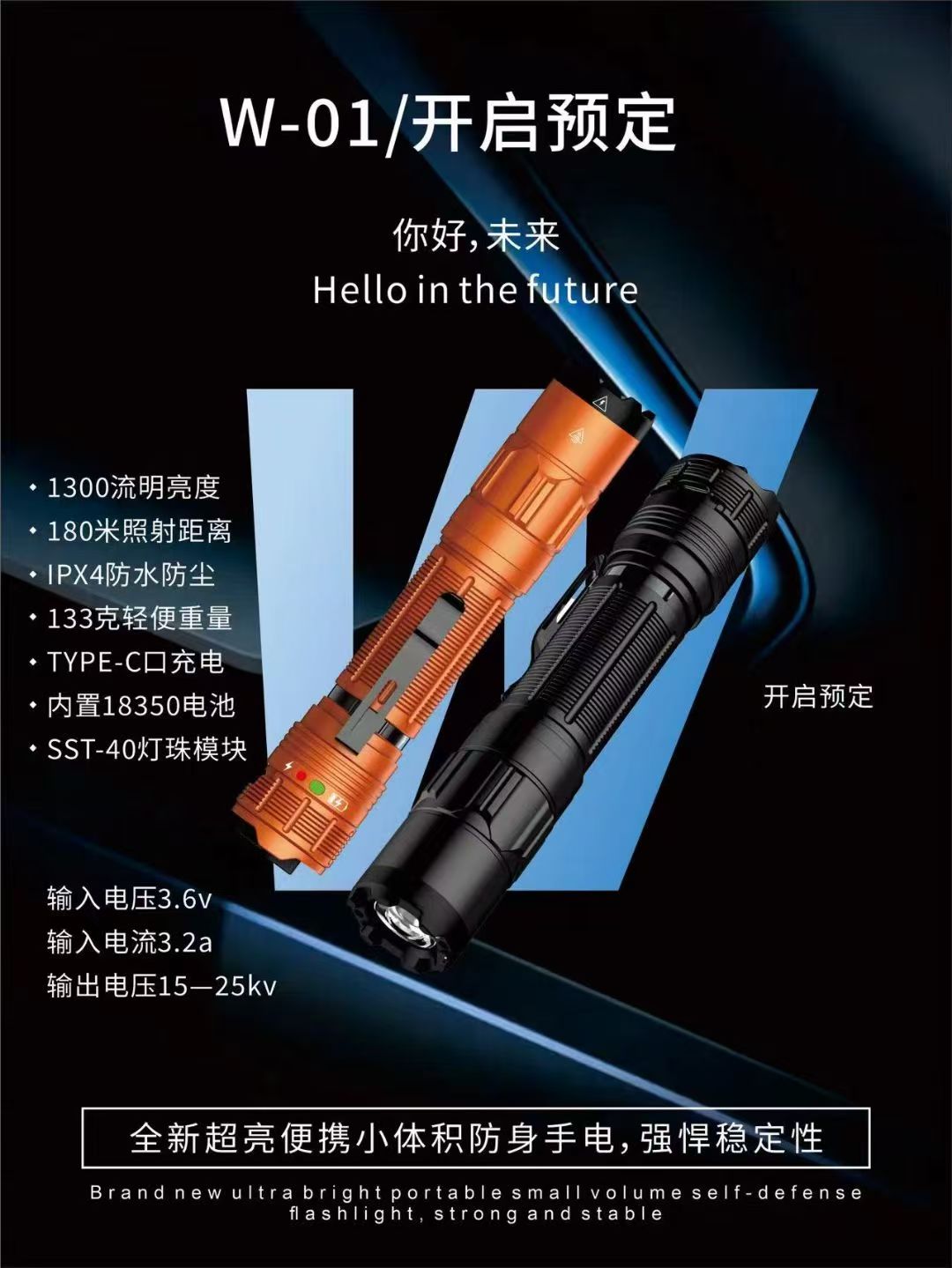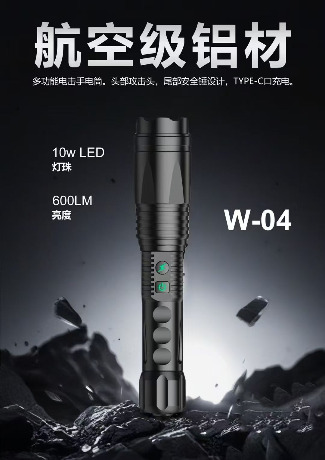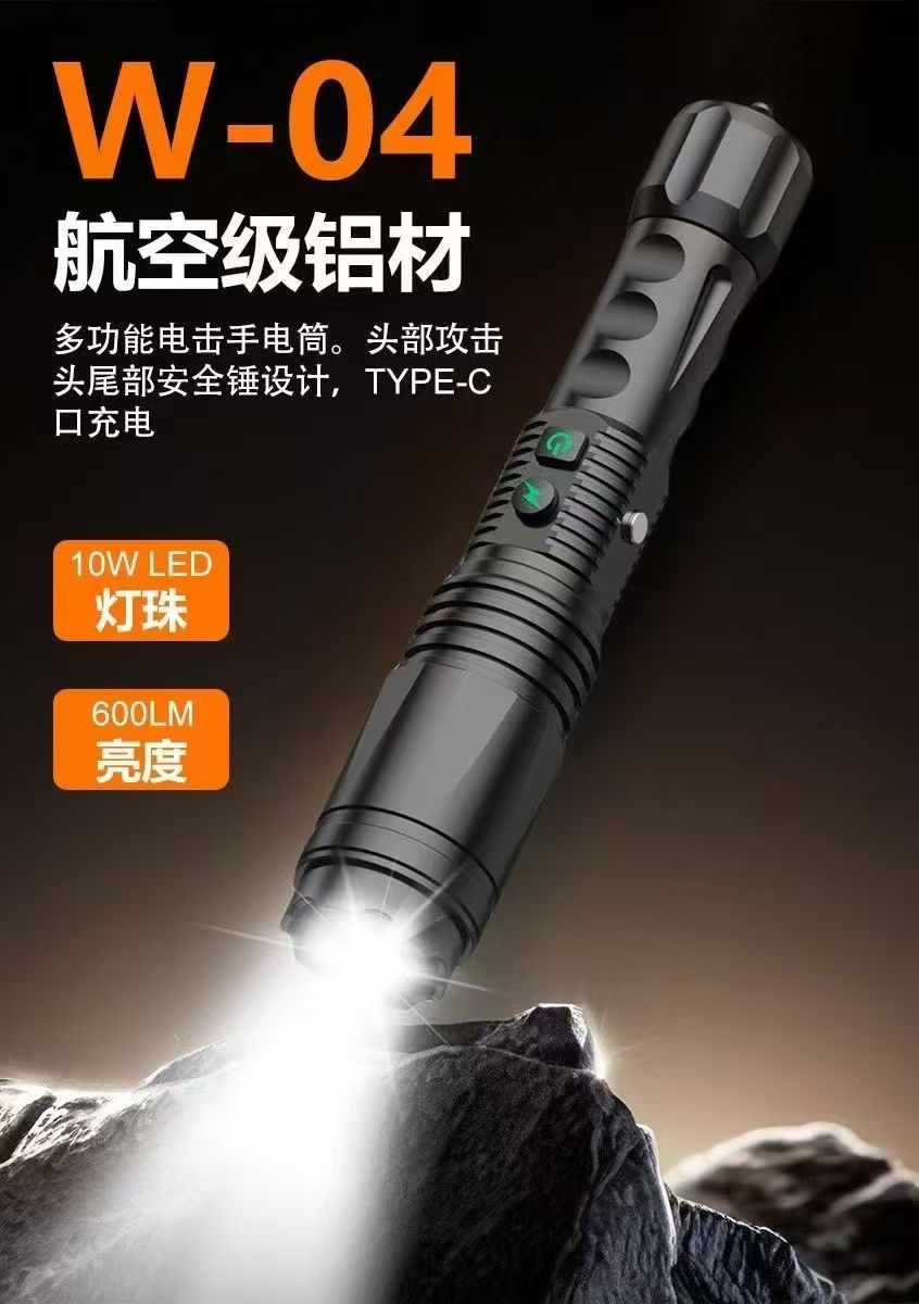 W02电棍-2025新品高端防身高压电棒-小型便携战术强光电