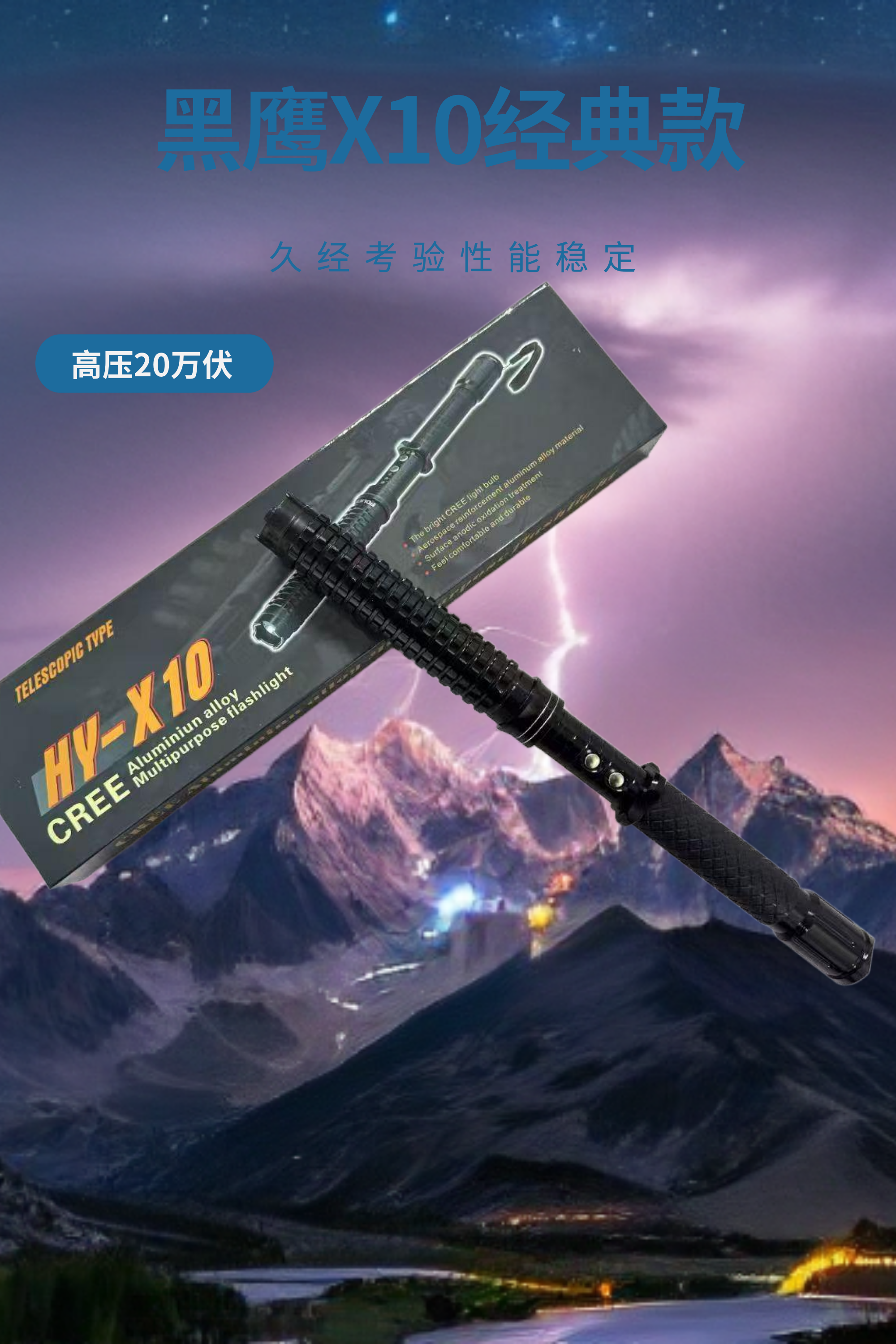 黑鹰X10电棍-防身高压电棒-大威力可伸缩电击器