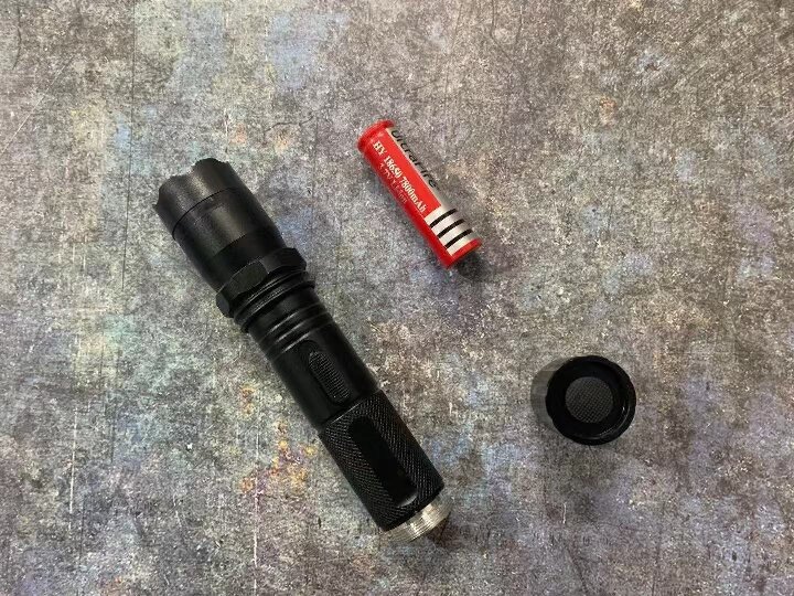 1、按照图纸装好电池,拧紧尾盖,将尾部保险开关按一下打开